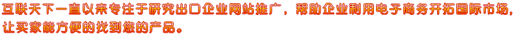 互联天下作为专业的国际网络营销服务商,主要从事外贸网站建设、搜索引擎优化、搜索引擎排名、B2B网站推广、行业网站、目录、黄页等一体化全球推广。